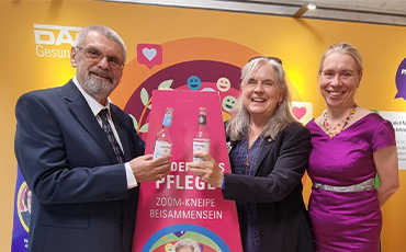Die Initiative „ZOOM-Kneipe BEISAMMENSEIN“ aus dem bayerischen Amberg ist Gewinnerin des Sonderpreises „Pflege“ beim DAK-Wettbewerb „Gesichter für ein gesundes Miteinander“ 2024. Die Bundesjury um DAK-Vorstandschef Andreas Storm und Bundesfamilienministerin Lisa Paus haben das Projekt von Kornelia Schmid, Vorsitzende des Vereins Pflegende Angehörige e.V. bei einer Siegerehrung in Berlin ausgezeichnet. Zuvor hatte es bereits den Wettbewerb auf Landesebene für sich entschieden. Bei der festlichen Preisverleihung lobten die Veranstalter die virtuelle Kneipe als Projekt mit viel Herzblut und einer enormen Reichweite unter den pflegenden Angehörigen in Deutschland.“